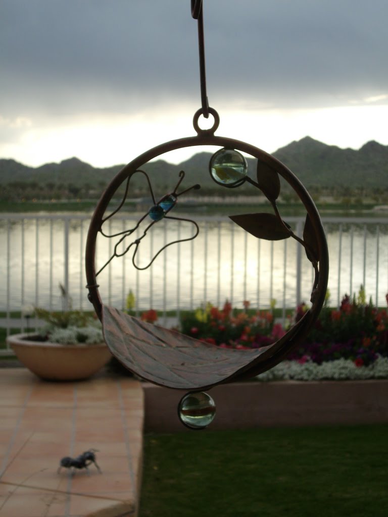 One of my gifts was a gated arbor that will go perfectly at the entrance of my secret garden. I can't put the planters on each side because the side yard is very narrow. No matter. This will enhance my idea of a miniature secret garden! We built Turr Tull's new house there and someday I will finish painting the block wall. I think I have been cheated on square footage on my lot--I have the smallest in of the lake lot houses on my side of the lake. Maybe they did that because I do have the best view of the lake and mountains.